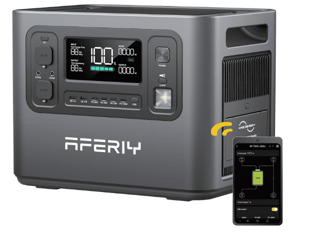 The AFERIY P210 Portable Power Station delivers 2048Wh LiFePO4 power with 220V–240V AC output, charging fully in 1.5 hours via AC + solar or 2 hours via AC alone. With 13 output ports and UPS functionality, it powers multiple devices and switches to backup in under 10ms. Built for durability with over 3,500 charge cycles, it features an LCD display, three-mode LED light, and comes with cables, tool bag, protective cover, plus a 5-year warranty with lifetime support.